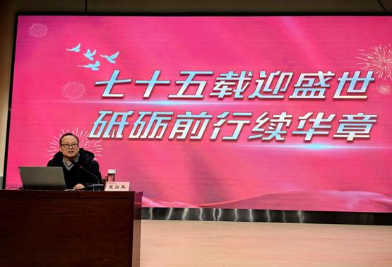 12月11日,副董事长张红兵到智能制造公司讲授“七十五再逢盛世 砥砺前行续华章”政治理论课。此次授课由智能制造公司党总支书记马瑾瑞主持,公司300余名师生到场聆听学习。