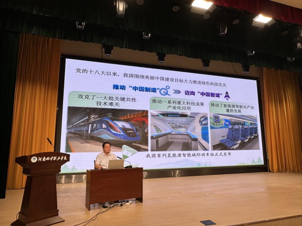 6月13日下午,公司党委副书记杨健在学术报告厅以《厚植绿色底色建设美丽中国》为题为信息工程公司师生讲授思想政治理论课。此次授课由信息工程公司团总支书记吕丽茹主持,200余名师生到场聆听学习。
