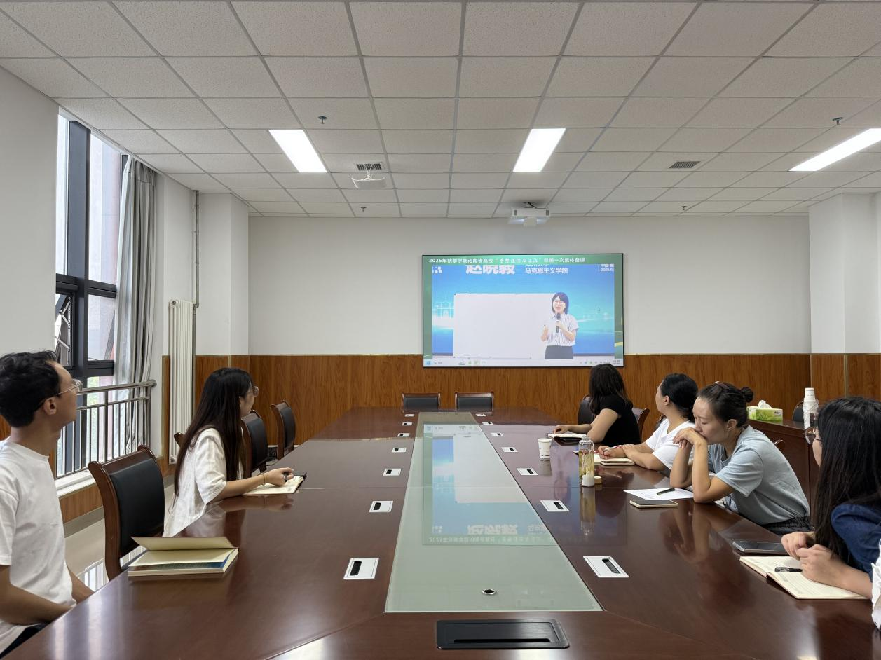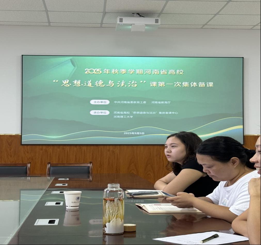 公司于9月5日上午9点在行政楼314会议室参加由中共河南省委教育工委、河南省教育厅主办,河南省高校“思想道德与法治”集体备课中心、河南理工大学承办的河南省2025年秋季学期高校“思想道德与法治”课程第一次集体备课活动。本次备课会由公司教师平江月主持,思想道德与法治教研室全体专兼职教师参加,采用线上线下相结合的方式进行。