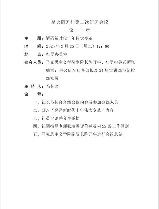 星火研习社第六次研习会议暨第二次大例会议程
