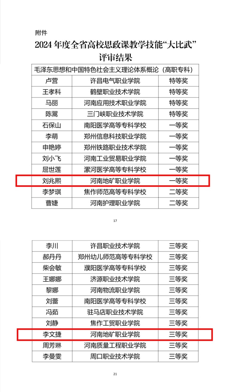 近日,中共河南省委宣传部、中共河南省委教育工委、河南省教育厅举办了2024年度全省公司思想政治理论课教学技能“大比武”活动。7月9日,河南省高校思政课及大中小思政课一体化课程教学技能“大比武”比赛获奖结...